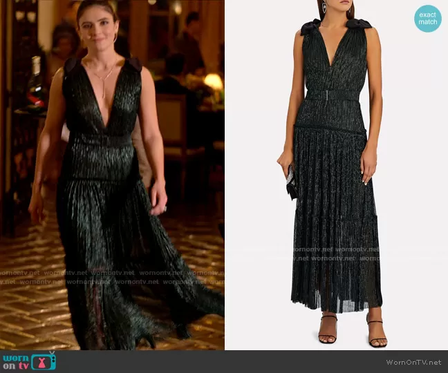 Dani Nunez (played by Arienne Mandi) on The L Word Generation Q on Showtime was spotted wearing this metallic green dress on The L Word Generation Q on episode 'Late to the Party' (2x01) in Aug 2021. Dani's Dress is the Ray Plissé Lurex Maxi Dress Sabina Musayev.