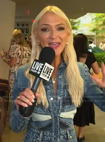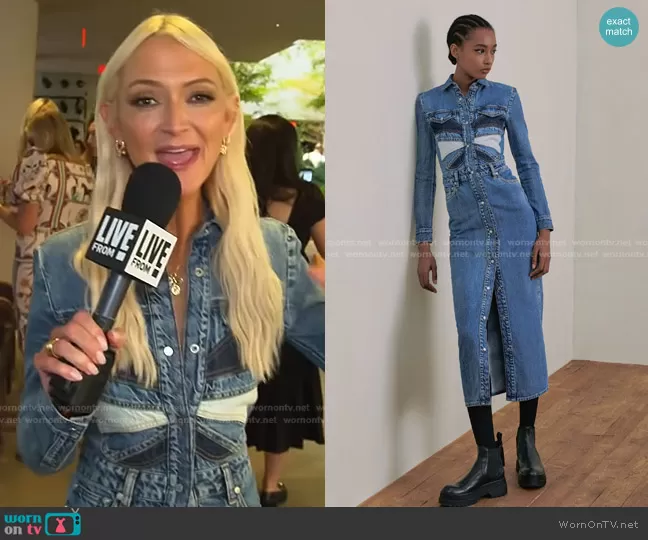 on E! News on E! was spotted wearing this butterfly patch denim shirtdress on E! News Daily Pop on Sep 08 2021's episode. 's Dress is the Fall 2021 Ready-To-Wear Collection by RED Valentino.