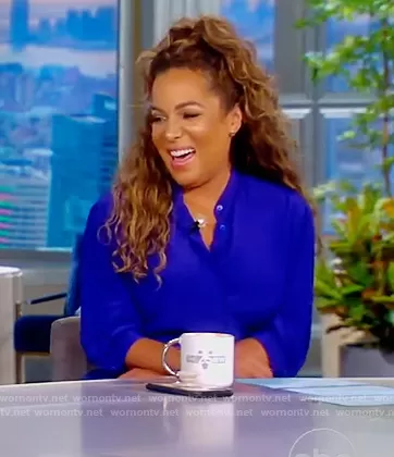 Sunny Hostin on The View on ABC was spotted wearing this blue split sleeve midi dress on The View on Sep 10 2021's episode. Sunny's Dress is the Olivia Silk Midi Dress by Stella McCartney.