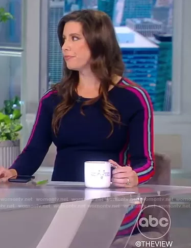 on The View on ABC was spotted wearing this blue dress with side stripes on The View on Sep 13 2021's episode. 's Dress is the Racer Stripe Dress by Milly.