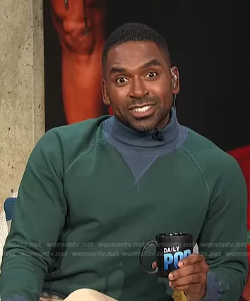 Justin Sylvester on E! News on E! was spotted wearing this green colorblock turtleneck sweatshirt on E! News Daily Pop on Sep 13 2021's episode. Justin's Sweater is the Colorblock Turtleneck Sweatshirt by Todd Snyder + Champion.