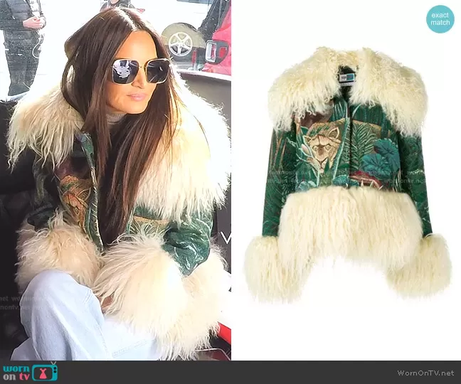 Lisa Barlow on The Real Housewives of Salt Lake City on Bravo was spotted wearing this green animal embroidered fur trim jacket on The Real Housewives of Salt Lake City on episode 'I Was Driving Carpool!' (2x09) in Nov 2021. Lisa's Jacket is the Trim-Detail Embroidered Jacket by Kenzo.