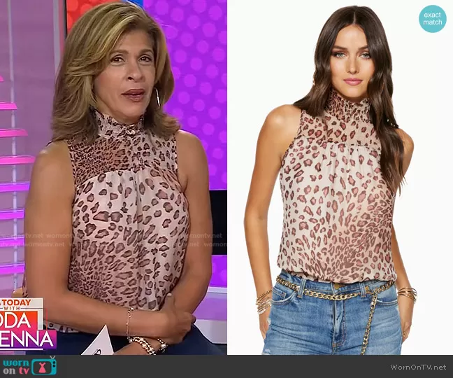 Hoda Kotb on Today on NBC was spotted wearing this leopard sleeveless top on Today on Sep 15 2021's episode. Hoda's Top is the Joyce High Neck Tank Top by Ramy Brook.