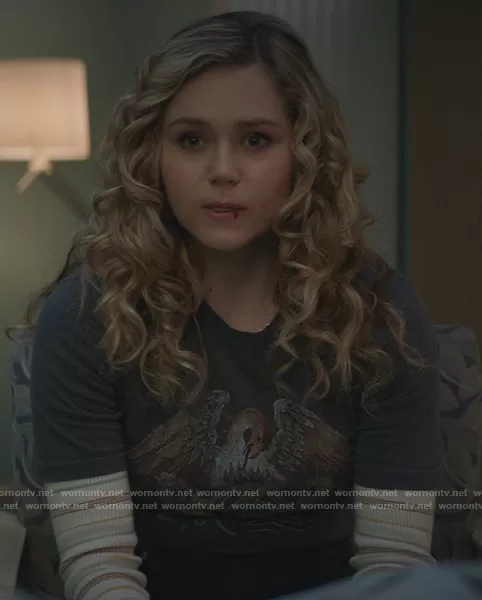 Courtney Whitemore (played by Brec Bassinger) on Stargirl on DC Universe was spotted wearing this black Queen graphic tee on Stargirl on episode 'Summer School: Chapter Six' (2x06) in Sep 2021. Courtney's Top is the Queen Crest Boyfriend Tee by DayDreamer.