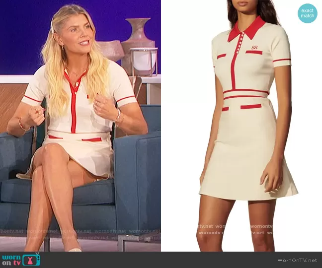 Tipped Short Sleeve Fit & Flare Knit Dress by Sandro worn by Amanda Kloots on The Talk