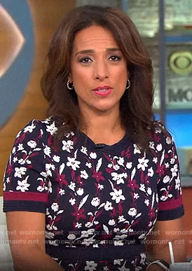 Michelle Miller on CBS Mornings on CBS was spotted wearing this navy floral dress on CBS This Mornings Saturday on Sep 14 2021's episode. Michelle's Dress is the Evan Dress by Shoshanna .