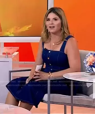Jenna Bush Hager on Today on NBC was spotted wearing this denim dress with multicolor buttons on Today on Sep 16 2021's episode. Jenna's Dress is the Olevia Denim Dress by Shoshanna.