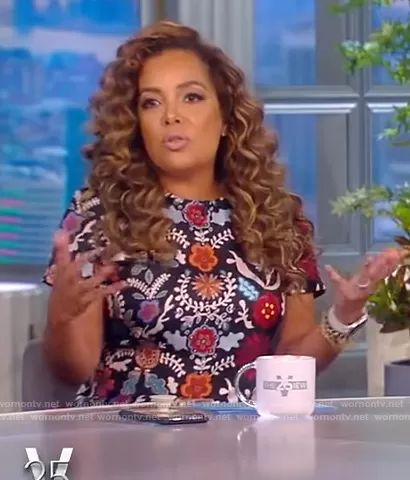 Sunny Hostin on The View on ABC was spotted wearing this black floral print dress on The View on Sep 17 2021's episode. Sunny's Dress is the Floral Maxi shiftsilk Dress by La DoubleJ.