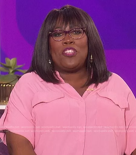 Sheryl Underwood on The Talk on CBS was spotted wearing this pink short sleeve shirt on The Talk on Sep 22 2021's episode. Sheryl's Top is the Pocket Detail Button-Up Shirt by Ted Baker.