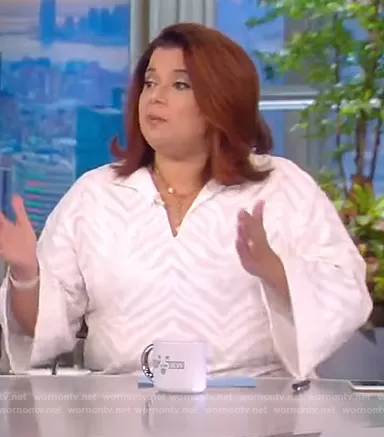 Ana Navarro on The View on ABC was spotted wearing this white zebra jacquard top on The View on Sep 23 2021's episode. Ana's Top is the Dales Zebra Jacquard Top by Lafayette 148.