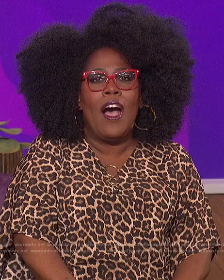 Sheryl Underwood on The Talk on CBS was spotted wearing this leopard print ring embellished top on The Talk on Sep 23 2021's episode. Sheryl's Top is the Plus Size Leopard Printed Top by MICHAEL Michael Kors.