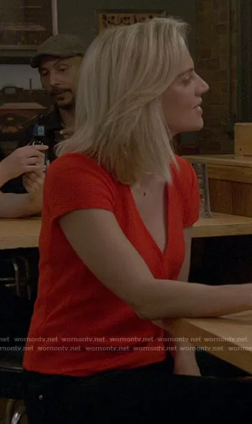 Sylvie Brett (played by Kara Killmer) on Chicago Fire on NBC was spotted wearing this red wrap top on Chicago Fire on episode 'Mayday' (10x01) in Sep 2021. Sylvie's Top is the Texture & Thread Wrap Tie Top by Madewell.
