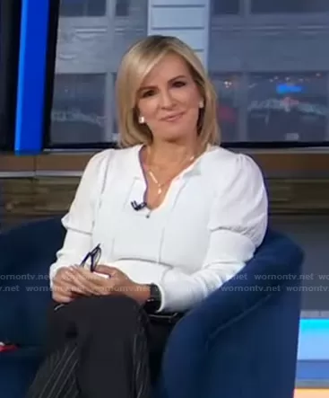 Dr. Jennifer Ashton on Good Morning America on ABC was spotted wearing this white puff sleeve top on Good Morning America on Apr 06 2022's episode. Jennifer's Top is the Ruffle Rib-Knit Puff-Sleeve Pullover by Rebecca Taylor.
