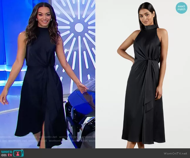 Alexis Gaube on The Price is Right on CBS was spotted wearing this navy midi dress on The Price is Right on Nov 21 2024's episode. Alexis's Dress is the Lelly Dress by Ted Baker.