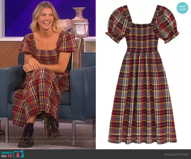Amanda Kloots on The Talk on CBS was spotted wearing this red plaid midi dress on The Talk on Sep 28 2021's episode. Amanda's Dress is the The Savanna Dress by The Great.
