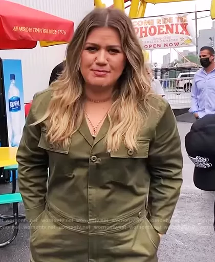 Kelly Clarkson on The Kelly Clarkson Show on NBC was spotted wearing this green utility jumpsuit on The Kelly Clarkson Show on Oct 01 2021's episode. Kelly's Jumpsuit is the Utility Jumpsuit in Army by Baacal.