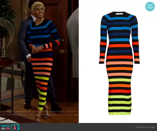Dress: Rainbow Striped Ribbed Midi Dress by Christopher John Rogers (Thanks Nick)