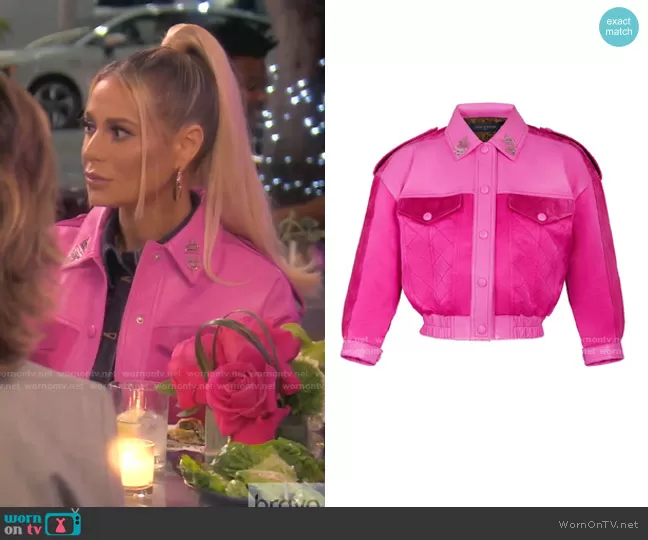 Dorit Kemsley on The Real Housewives of Beverly Hills on Bravo was spotted wearing this pink cropped leather jacket on The Real Housewives of Beverly Hills on episode 'New Year, Old Grudges' (11x20) in Oct 2021. Dorit's Jacket is the Printed Bi-Material Quilted Jacket by Louis Vuitton.