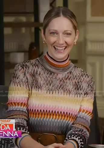 on Today on NBC was spotted wearing this zig zag knit dress on Today on Oct 07 2021's episode. 's Dress is the Knitted Zigzag Dress by Missoni.