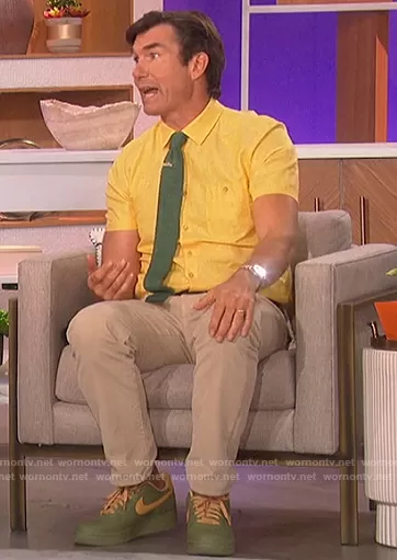 Jerry O'Connell on The Talk on CBS was spotted wearing this yellow shirt on The Talk on Apr 14 2022's episode. Jerry's Shirt is the Civiche Linen & Cotton Button-Up Shirt by Ted Baker.