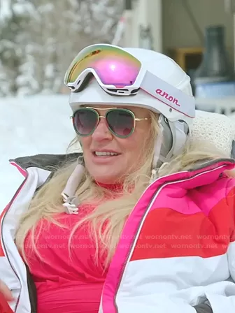 Heather Gay on The Real Housewives of Salt Lake City on Bravo was spotted wearing this sunglasses and goggles on The Real Housewives of Salt Lake City on episode 'Gin and Bear It' (2x05) in Oct 2021. Heather's Sunglasses is the Aviator Metal Sunglasses by Gucci . Heather's Goggles is the WM1 Goggles by Anon.