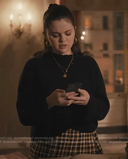 Mabel Mora (played by Selena Gomez) on Only Murders in the Building on Hulu was spotted wearing this yellow plaid skirt on Only Murders in the Building on episode 'Open and Shut' (1x10) in Oct 2021. Mabel's Skirt is the Midi Skirts by McQ Alexander McQueen . Mabel's Earrings is the Mini Samira Hoops by Jennifer Fisher.