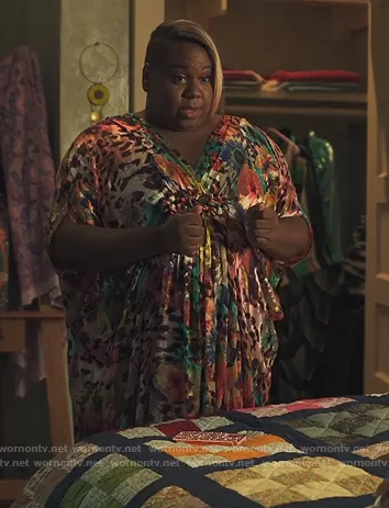 (played by ) on Our Kind of People on FOX was spotted wearing this Metallic pleated dress on Our Kind of People on episode 'Crabs in a Gold Plated Barrel' (1x04) in Oct 2021. 's Dress is the High-Low Chiffon Kaftan Gown by Rickie Freeman For Teri Jon.
