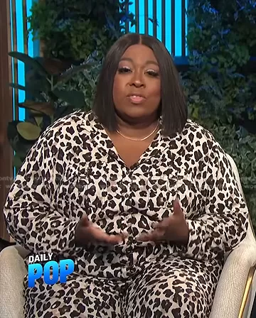 Loni Love on E! News on E! was spotted wearing this leopard print jumpsuit on E! News Daily Pop on Mar 11 2022's episode. Loni's Jumpsuit is the Leopard Utility Jogger Jumpsuit by Ashley Stewart.