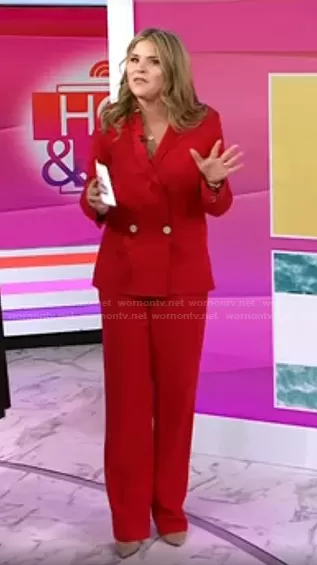 Jenna Bush Hager on Today on NBC was spotted wearing this red blazer and pants on Today on Oct 19 2021's episode. Jenna's Jacket is the Bjorn Blazer by Black Halo