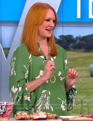 on The View on ABC was spotted wearing this green floral blouse on The View on Oct 19 2021's episode. 's Top is the Floral Whispers Tie-Sleeve Blouse by Vince Camuto.