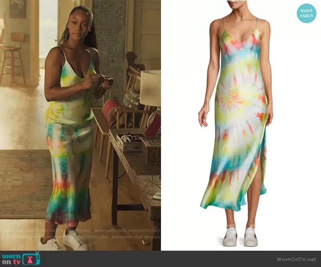 Angela Vaughn (played by Yaya DaCosta) on Our Kind of People on FOX was spotted wearing this tie dye slip dress on Our Kind of People on episode 'The Miseducation of the Negro' (1x05) in Oct 2021. Angela's Dress is the Tie dye Slip Dress by Dannijo.