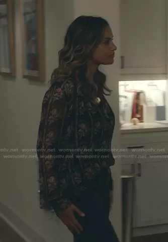 (played by ) on The Resident on Fox was spotted wearing this Billie’s black floral blouse on The Resident on episode 'The Thinnest Veil' (5x05) in Oct 2021. 's Top is the Siandra Printed Blouse by Etoile Isabel Marant.