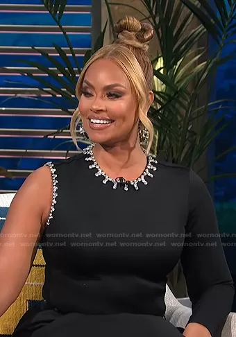 on E! News on E! was spotted wearing this Gizelle’s black crystal embellished one-shoulder top on E! News Daily Pop on Oct 27 2021's episode. 's Bodysuit is the Asymmetric Crystal-Embellished Bodysuit by Area.