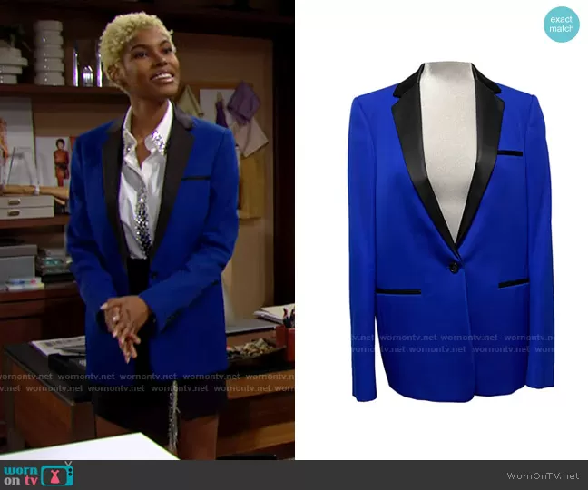 Paris Buckingham (played by Diamond White) on The Bold and the Beautiful on CBS was spotted wearing this blue blazer and crystal fringe skirt on The Bold and the Beautiful on Oct 28 2021's episode. Paris's Jacket is the Blue Blazer by Celine . Paris's Top is the Chain-Accent Shirt by Christopher Kane . Paris's Skirt is the Jewel Fringe Mini Skirt by Zara.