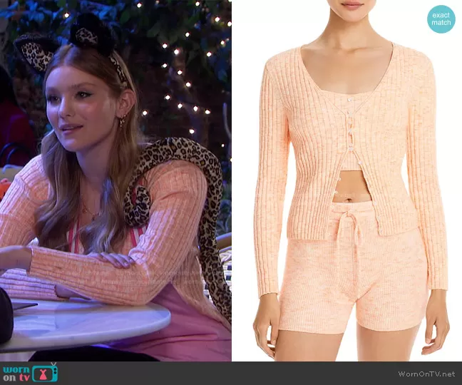 Alice Caroline Horton (played by Lindsay Arnold) on Days of our Lives on Peacock was spotted wearing this orange ribbed cardigan on Days of our Lives on Oct 29 2021's episode. Allie's Sweater is the Frenchie Ribbed Cardigan in Peach by Wayf.