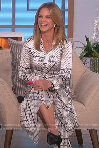 Asymmetric Printed Stretch Satin Shirt Dress by Ganni worn by Natalie Morales on The Talk