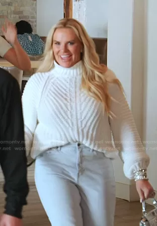 Heather Gay on The Real Housewives of Salt Lake City on Bravo was spotted wearing this white ribbed sweater on The Real Housewives of Salt Lake City on episode 'A Wolf Pack Of Secrets' (2x08) in Nov 2021. Heather's Sweater is the Sweetheart Sweater by Free People.