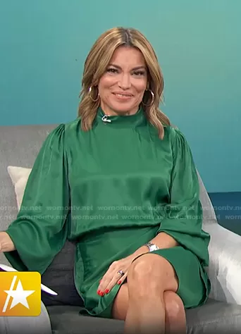 Kit Hoover on Access Hollywood on NBC was spotted wearing this green mock neck satin dress on Access Hollywood on Nov 02 2021's episode. Kit's Dress is the Mock Neck Satin Effect Dress by Zara.