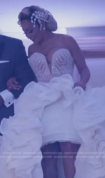Karen Huger on The Real Housewives of Potomac on Bravo was spotted wearing this vow renewal gown on The Real Housewives of Potomac on episode 'Altar-ed State of Mind' (6x17) in Nov 2021. Karen's Dress is the The Karen Gown by Vivien Agbakoba.