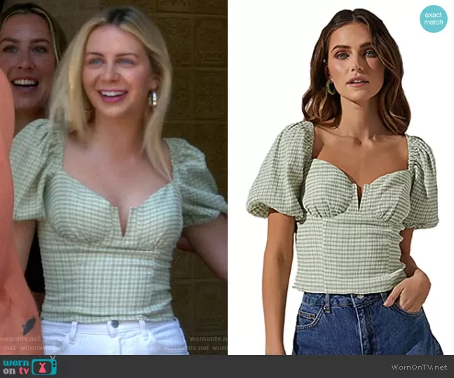 on Selena + Chef on HBO Max was spotted wearing this green plaid top on Selena + Chef on episode 'Selena + Fabio Viviani' (3x04) in Nov 2021. 's Top is the Daydreamer Top by ASTR.