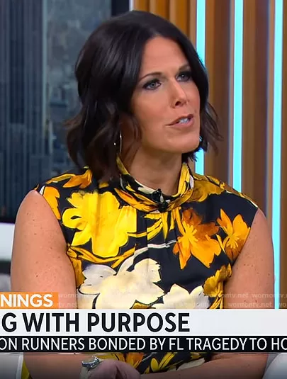 Dana Jacobson on CBS Mornings on CBS was spotted wearing this yellow floral top on CBS Mornings on Feb 23 2022's episode. Dana's Top is the Riley Paper Peony Print Top by Milly .