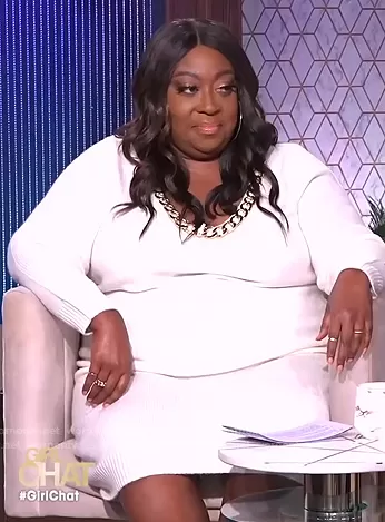 Chain Scoop Sweater Dress by Eloquii worn by Loni Love on The Real