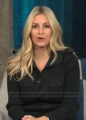 Morgan Stewart on E! News on E! was spotted wearing this black ribbed button down knit dress on E! News Daily Pop on Nov 10 2021's episode. Morgan's Dress is the Ribbed-Knit Shoulder-Tab Dress by Bottega Veneta.