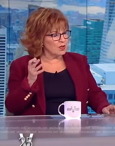 Joy Behar on The View on ABC was spotted wearing this burgundy double breasted blazer on The View on Feb 09 2022's episode. Joy's Blazer is the Kenzie Double-Breasted Blazer by L'Agence.
