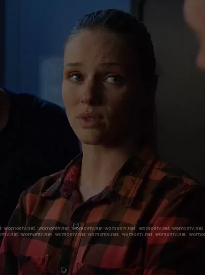 Hailey Upton (played by Tracy Spiridakos) on Chicago PD on NBC was spotted wearing this red checked shirt on Chicago PD on episode 'Fractures' (9x08) in Nov 2021. Hailey's Top is the Kimberly Check Shirt by NSF.