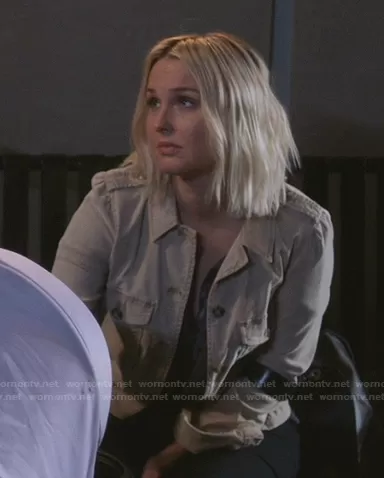 Jo Wilson (played by Camilla Luddington) on Greys Anatomy on ABC was spotted wearing this beige button down jacket on Greys Anatomy on episode 'Bottle Up and Explode!' (18x05) in Nov 2021. Jo's Jacket is the Pacey Jacket by Paige.
