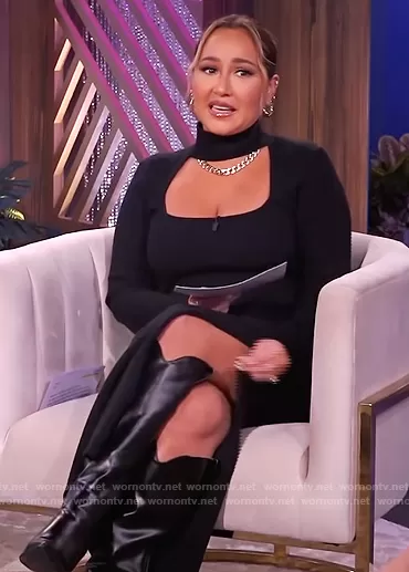 Adrienne Houghton on The Real on BETher was spotted wearing this black cutout dress on The Real on Nov 15 2021's episode. Adrienne's Dress is the Kenny Rib-Knit Cutout Dress by Jonathan Simkhai.