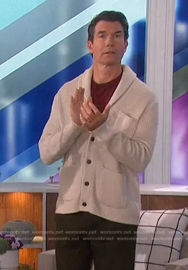 Jerry O'Connell on The Talk on CBS was spotted wearing this white ribbed cardigan on The Talk on Jul 27 2022's episode. Jerry's Sweater is the Shawl Collar Cardigan by Banana Republic.