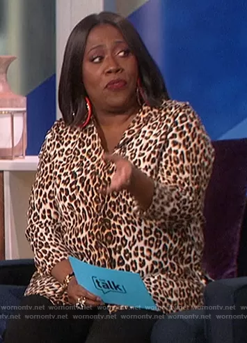 Sheryl Underwood on The Talk on CBS was spotted wearing this leopard print blouse on The Talk on Nov 16 2021's episode. Sheryl's Top is the Slim Signature Silk Shirt by Equipment.
