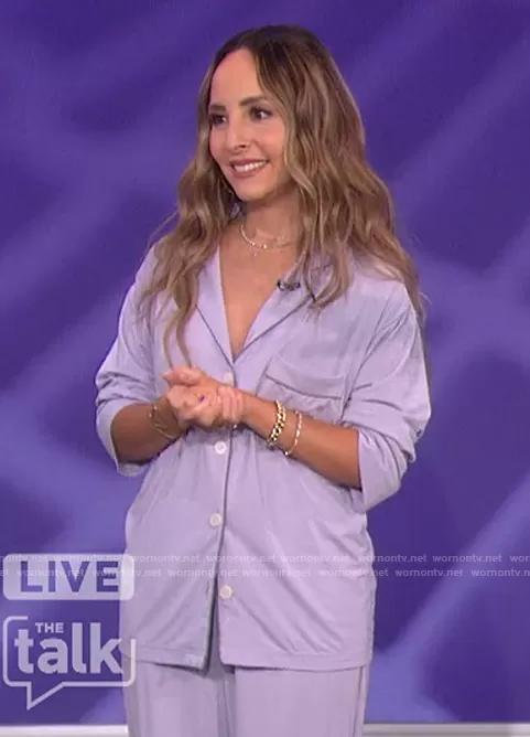 on The Talk on CBS was spotted wearing this purple pajamas on The Talk on Nov 16 2021's episode. 's Pajamas is the Purple Pajamas by Sleepy Jones.